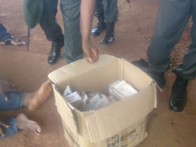A PDP House of Representative aspirant in the just concluded 2015 elections and former Commissioner for Land in Enugu State Dr Chukwuemeka Ujam, who contested for the Nkanu East/West seat was allegedly caught with 4000 PVCs in Enugu yesterday by the military, who paraded him. More pics after cut....